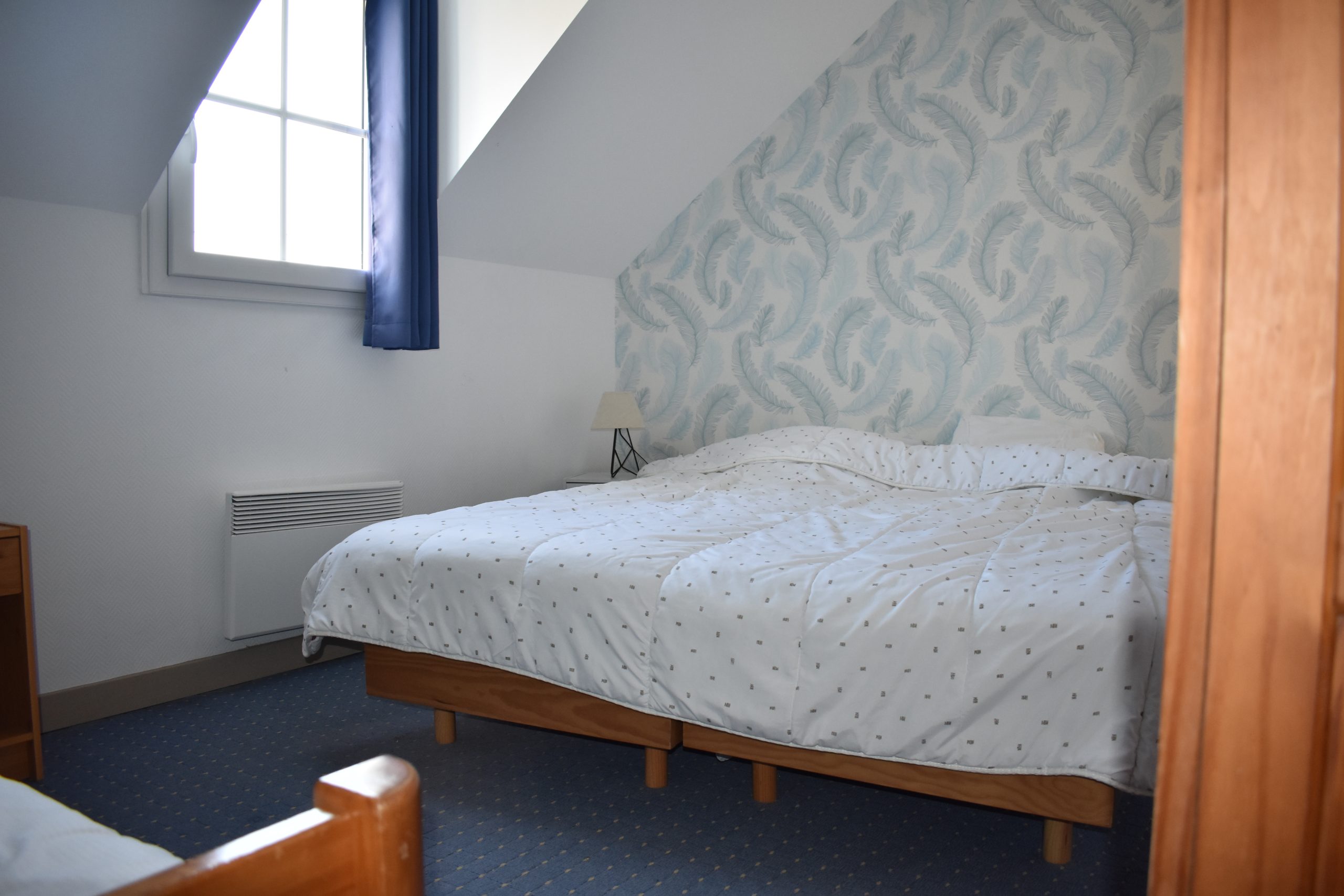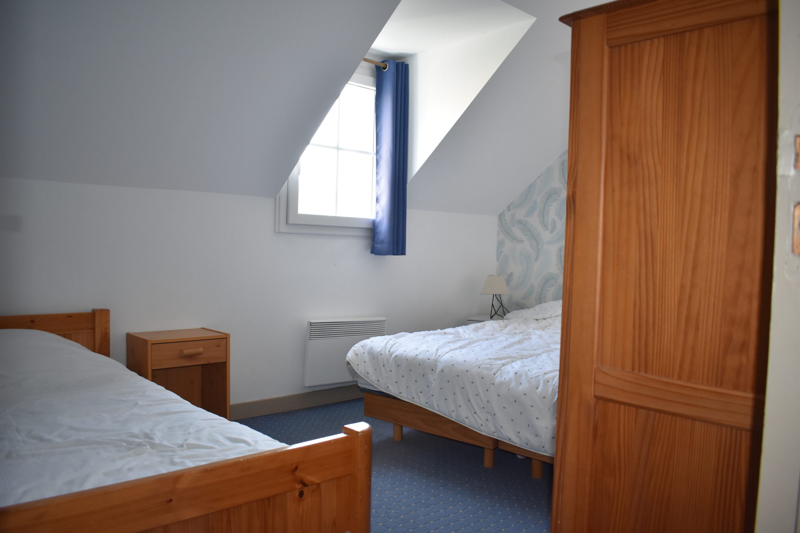 À l’étage, deux chambres familiales permettent de loger confortablement petits et grands. La première chambre dispose d’un lit double 140×190, d’un lit simple 90×190 et d’un lit bébé. La seconde est aménagée avec un lit double 160×200 (séparable) et un lit simple 90×190. Vous y trouverez également deux salles d’eau avec douche et lavabo, ainsi qu’un second WC indépendant, pour plus de confort et de fluidité lors de votre séjour.