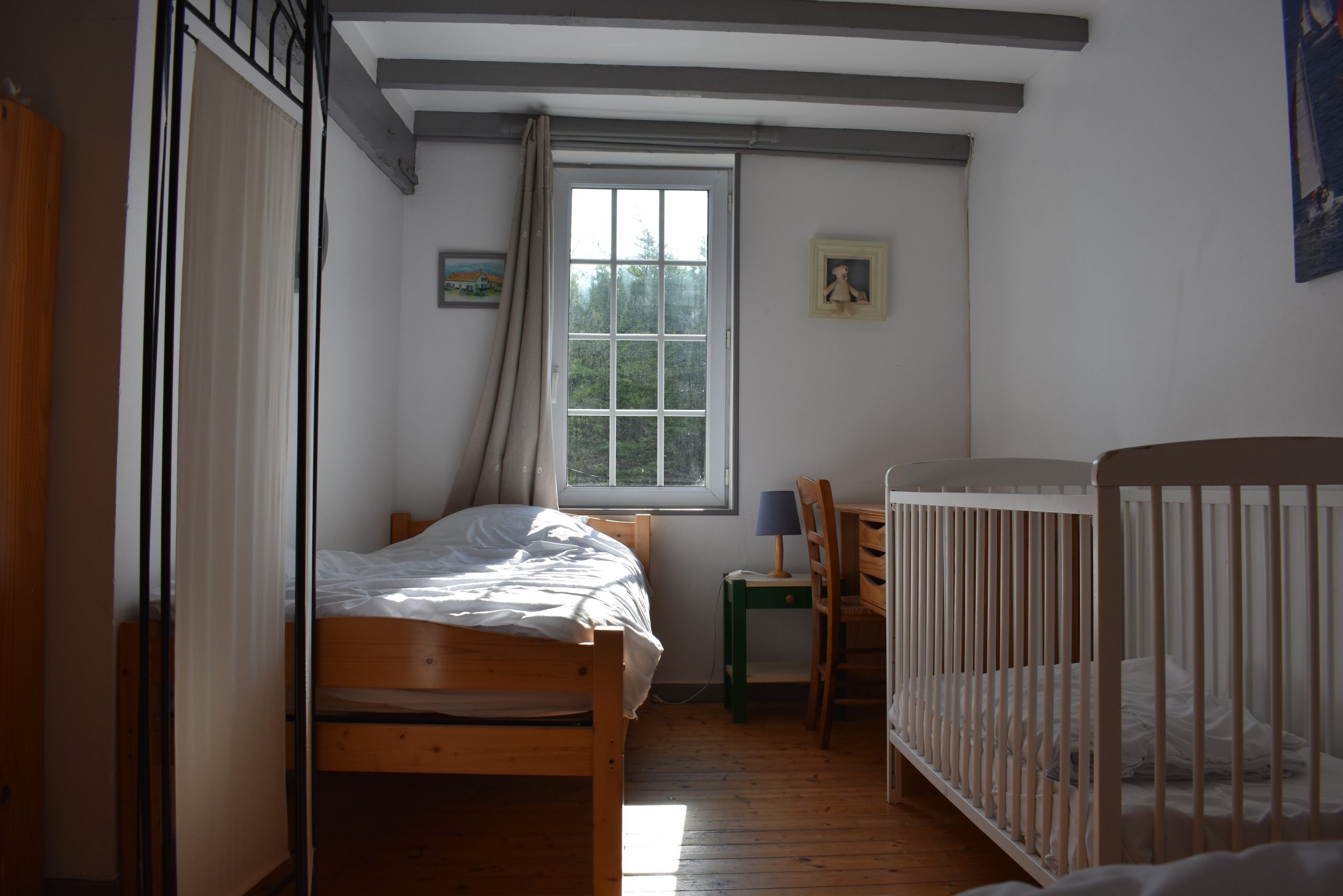 Le Gîte Les Pruniers est idéal pour une famille avec enfants en quête de calme et de confort. Au rez-de-chaussée, une grande chambre modulable accueille deux lits simples 80×200 (pouvant être réunis en un lit double), un lit simple 90×190 ainsi qu’un lit d’enfant, pour un couchage souple et adapté à tous. Une salle d’eau avec douche et WC complète ce niveau.
