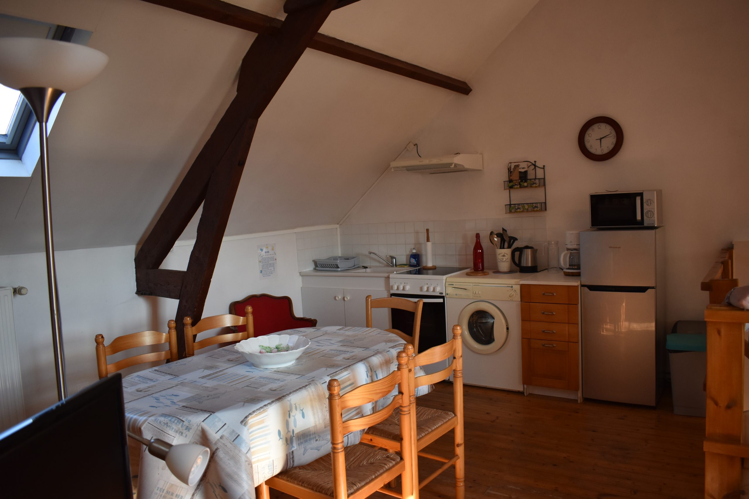 À l’étage, vous profitez d’un vaste séjour lumineux avec coin salon, télévision HD, lecteur DVD et Wi-Fi fibre, ainsi qu’un canapé convertible pour plus de flexibilité. La cuisine ouverte, entièrement équipée (four, micro-ondes, lave-linge…), permet de préparer vos repas en toute simplicité. L’escalier est sécurisé par une barrière pour la tranquillité des familles.